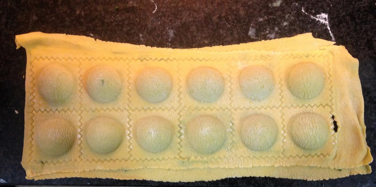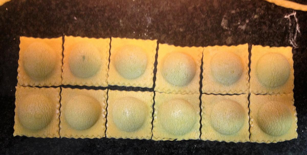 Paso 11: Con un cortador de pasta quítale todos los sobrantes y recorta todos los raviolis.