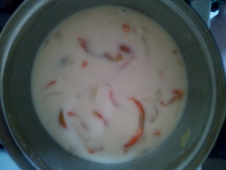 Inmediatamente después, agregamos la leche tibia y los condimentos que desees (sal, pimienta, sasón completa, albahaca molida, cebolla y ajo en polvo, etc) y mezclamos con una paleta de madera hasta que espese, sin dejar de mover. Allí tenemos ya nuestra salsa blanca.