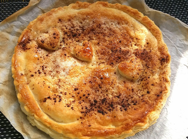 María José hizo un pastel grande con la lámina de hojaldre entera, yo hice pastelitos pequeños para picar, cualquiera de las dos versiones está deliciosa y sorprende