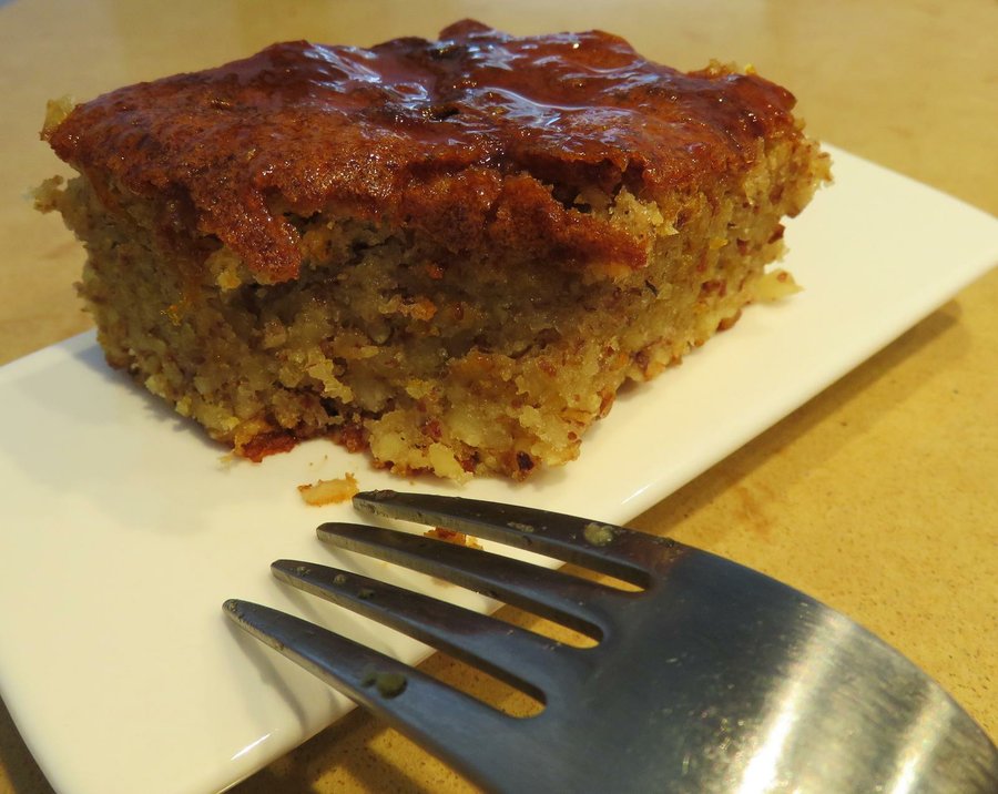 8º Con un palillo pincharemos toda la superficie del pastel y vertemos el jarabe o cobertura por encima. Dejar reposar. Cortar en cuadraditos o ayudándote de un corta pasta para que todas las porciones tengan el mismo tamaño.
