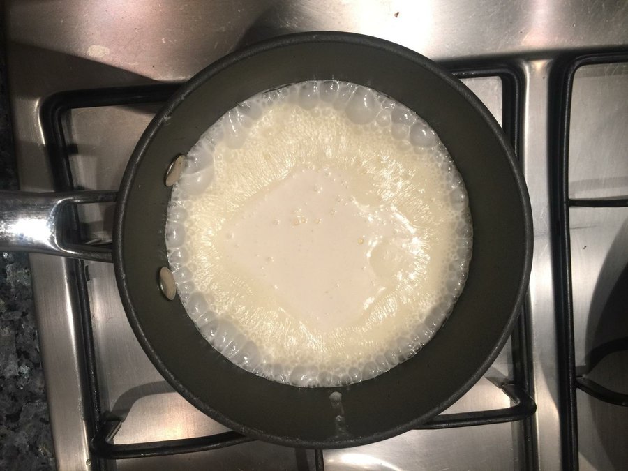 2. - Para preparar la ganache en una olla pequeña, vierte la crema para batir y espera a que comience a hervir.