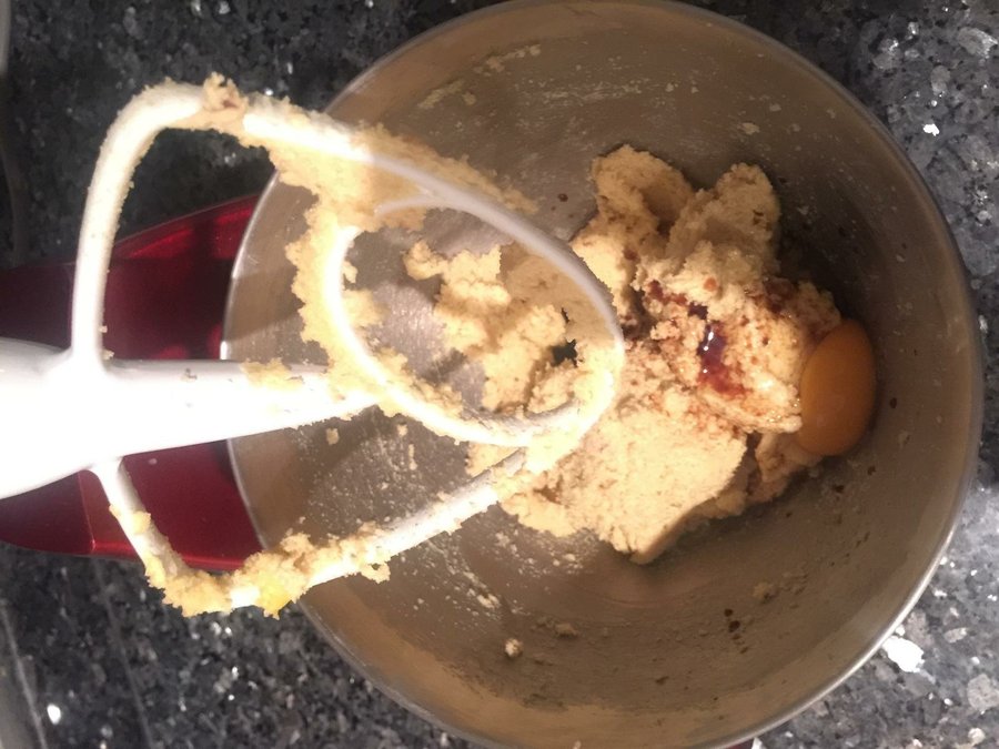 5. -En un bol para una batidora eléctrica, coloca la mantequilla junto con el azúcar granulada y crémalo hasta que quede suave y claro. Añade el extracto de vainilla y los huevos, uno por uno.
