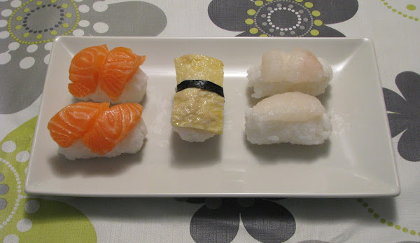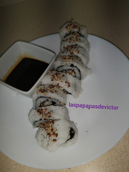 -Para comenzar ponemos el arroz en un colador y lo sumergimos en agua para limpiarlo y quitarle el almidón. Hay que cambiar el agua varias veces hasta que el agua quede transparente. Después pondremos a cocer el arroz en un cazo con agua hirviendo durante unos veinte minutos. Y cuando esté cocido lo colaremos y lo pondremos en una fuente plana, Ahora echaremos un chorrito de vinagre y le pondrmos una cucharadita de azúcar. Con una cuchara o unos palillos, penaremos el arroz mientras mezclamos. De ésta manera conseguiremos que el arroz quede pegajoso y que no se apelmace.