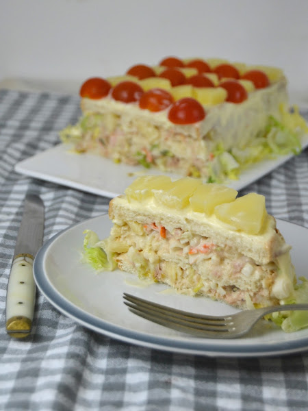 Hola Cocinitas!! El buen tiempo también llega a nuestras cocinas, por eso preparamos platos refrescantes, con elaboraciones sencillas y que podemos consumir en frío. Un claro ejemplo es el PASTEL FRÍO DE ATÚN Y SURIMI que hemos preparado hoy. En realidad este pastel se puede consumir durante todo el año y si nos esmeramos un poco en su decoración es ideal para una ocasión especial. Puedes presentar de una sola pieza y luego cortar y servir, o bien, cortar en pequeñas porciones y presentar a modo de canapés.