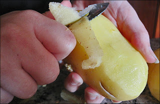 Como siempre primero pelamos las patatas y luego las lavamos.