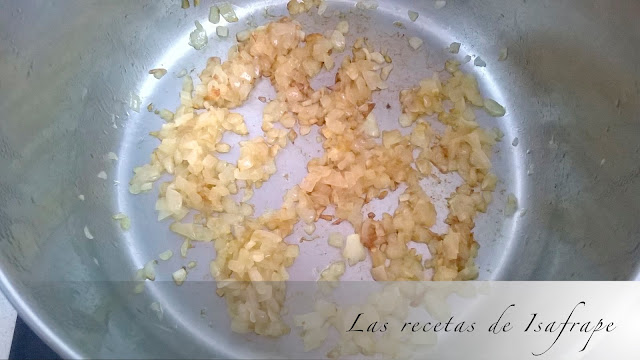 Pelamos la cebolla y el ajo y los picamos en trozos muy pequeños. Ponemos una olla al fuego y añadimos el aceite. Cuando esté caliente añadimos la cebolla y el ajo y los rehogamos a fuego medio hasta que la cebolla esté dorada.