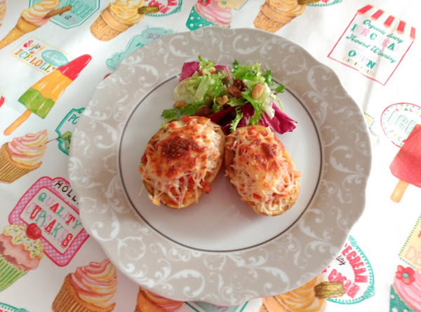 Ingredientes para None comensalesPatatas asadas al horno o microondas sal pimienta crema de leche beicon o taquitos de jamón queso rallado [imagen=1828931]Cogemos las patatas asadas y las vaciamos, con la pulpa obtenida mezclamos un poco de crema de leche, el beicon pasado por la sartén, el queso rallado y lo salpimentamos. Rellenamos las medias patatas con esa salsa y las intoducimo ...