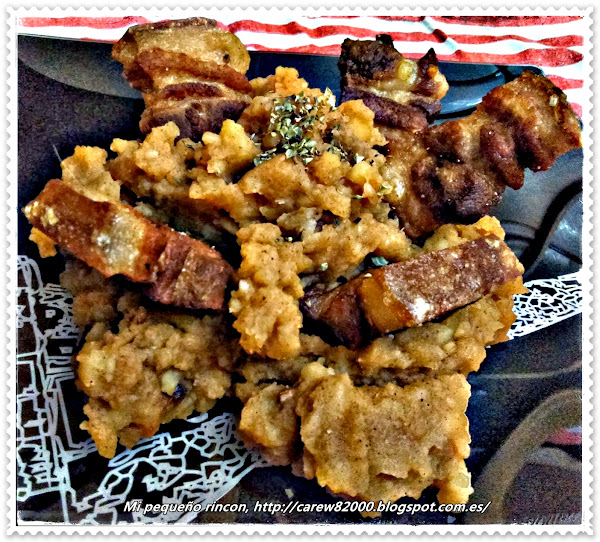 Mientras tanto en una sartén ponemos como dos cucharadas de aceite y freiremos la panceta que habremos cortado en tacos finos, hay que hacerlo a fuego bajo para que se doren y no se queme.