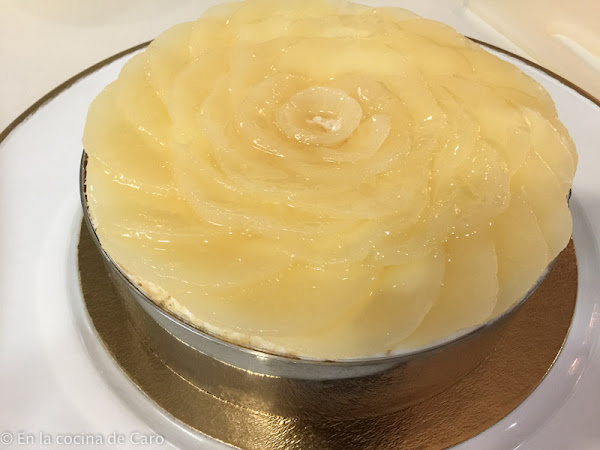 Cocemos el almíbar hasta que quede un poco más espeso. Batimos las yemas con el resto del azúcar hasta que estén espumosas y añadimos la almendra. Mezclamos bien e incorporamos el licor de pera y un chorrito de almíbar, hasta obtener una crema no demasiado espesa.