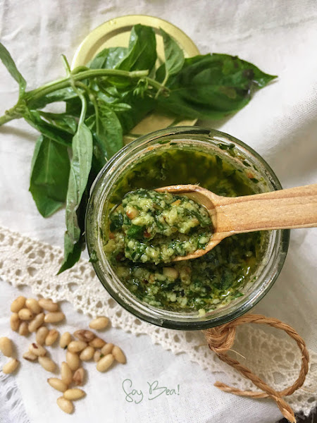 "La palabra pesto viene del genovés pestare, que significa machacar o moler en un mortero, que es la forma en que tradicionalmente se prepara esta salsa"