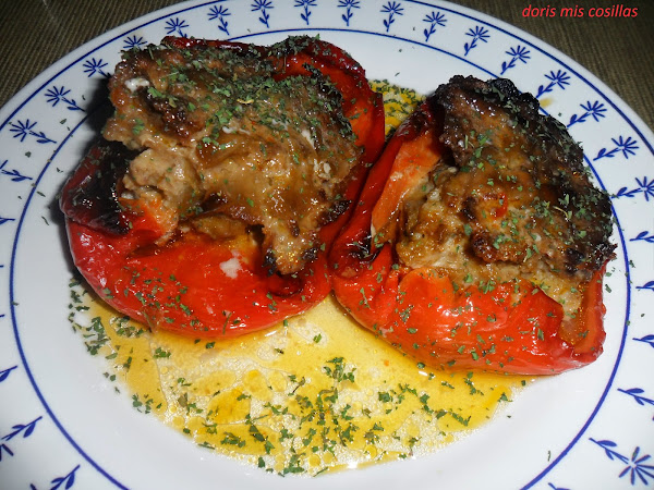 5- Con esta masa de carne vamos ir rellenando todos los pimientos y si os sobra algo de carne hacéis unos albondigones.