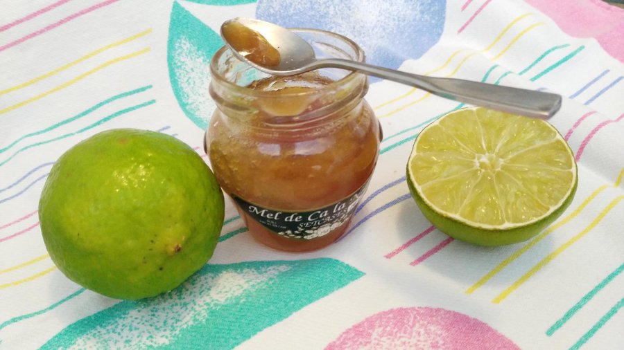 Mezclad el zumo de la lima y miel al gusto. (una cuchara de postre más o menos)