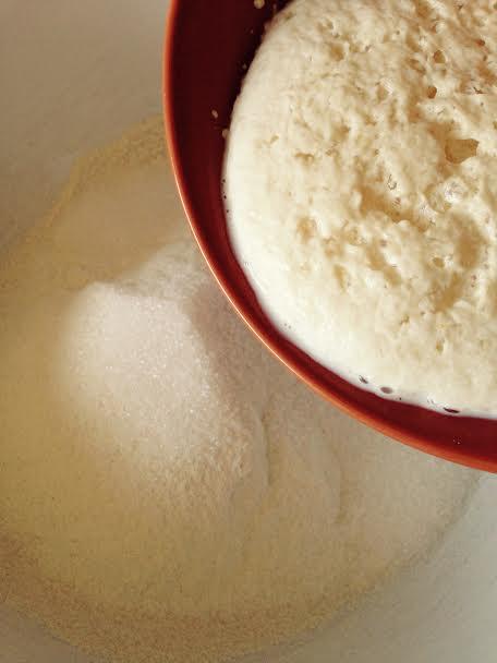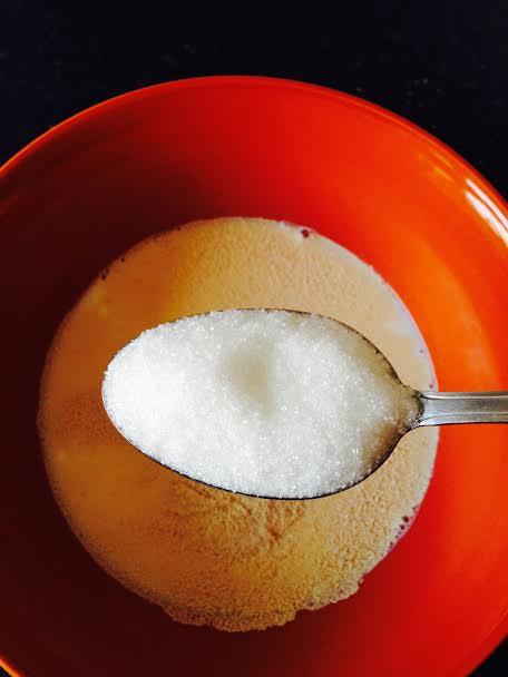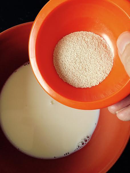 En un bol mezcla la leche (debe estar caliente tirando a tibia), una cucharada del azúcar y la levadura. Deja reposar 5 minutos.