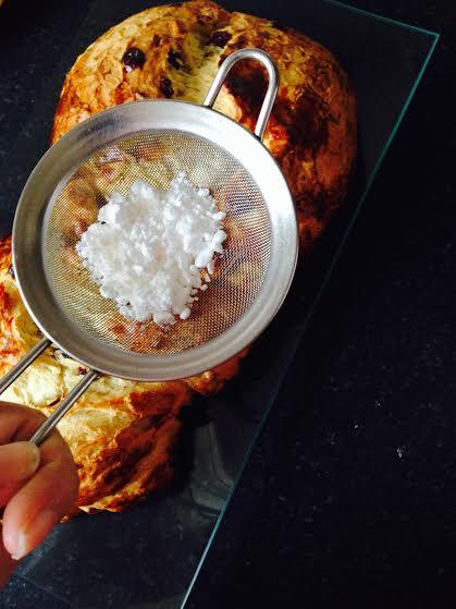 Hornea durante 20-30 minutos, hasta que este dorado. Deja enfriar y sírvelo con una capa de azúcar glas.