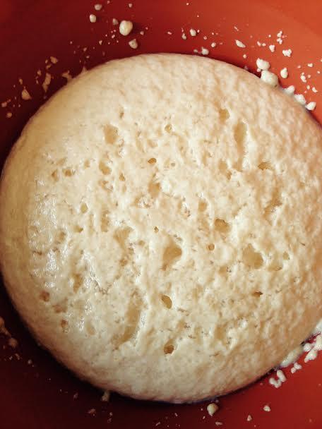 Amasa a mano o a máquina (con el gancho amasador) hasta formar una masa lisa y suave que se despegue fácilmente. Cúbrela con film transparente en un bol pincelado con aceite y déjala reposar durante 1-2 horas o hasta que haya doblado su tamaño.