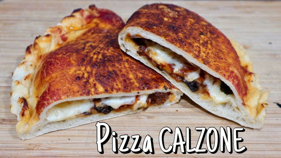 4º Ahora vamos a estirar la masa de pizza puedes ver como hice la masa de pizza en este enlace https://goo.gl/PcHJQR , una vez estiradas la ponemos un poco de aceite de oliva en su base, encima colocamos el relleno, encima ponemos el queso rallado tipo mozzarella, encima un poco de queso parmesano, y por último encima las hojas de albahaca, ahora tenemos que doblar la masa de pizza de manera que el relleno quede encerrado, es como hacer una empanadilla gigante, haciendo unos dobleces en los bordes quedara totalmente sellada.