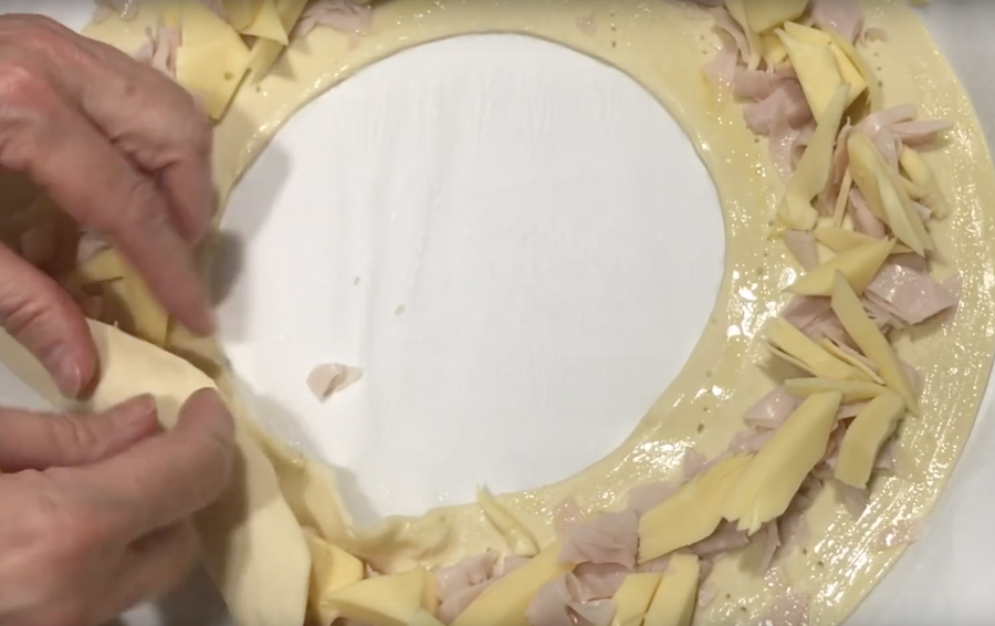3.- Ponemos el jamón y el queso en el centro y doblamos