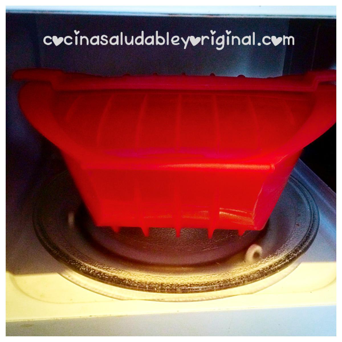 Ahora ya podemos cerrar la Lékué ogya XL e introducirla al microondas a 800W por 10 minutos o a 700W 15 minutos.