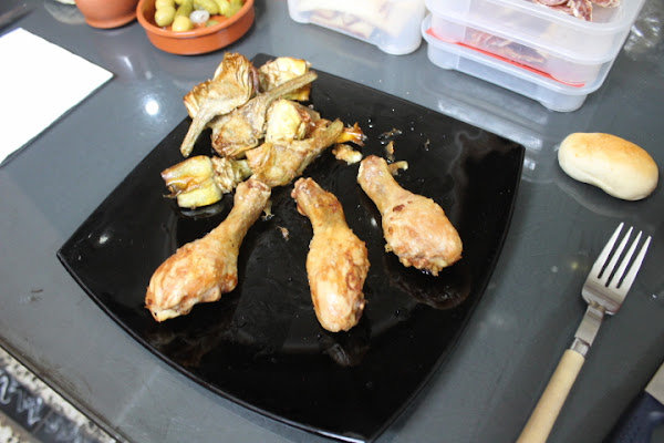 Hoy como tenía pollo que me sobró de la paella del domingo y también tengo alcachofas, pues se me ha ocurrido guisarlo todo junto y os aseguro que ha quedado un plato sencillo y sabroso.
