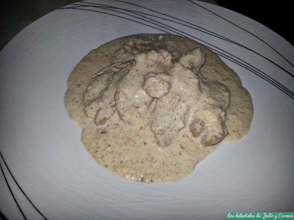 Cuando el pollo esté blando, retirarlo, subir el fuego y reducir la salsa, no debe quedar muy liquida. Triturarla con la batidora y mezclar con la nata .Probar el punto de sal.