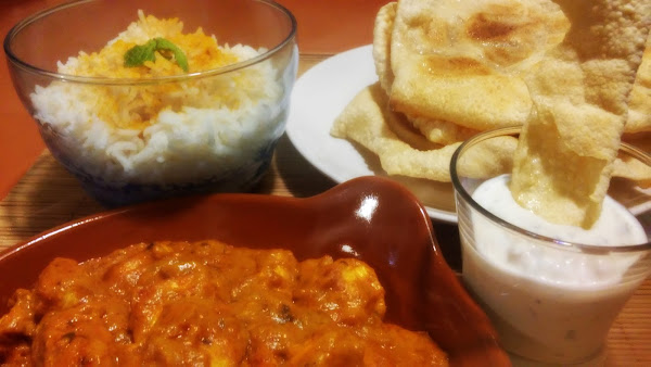 ¿Os Apetece un pollo Tikka Masala acompañado de crujientes Pappadums y chutney de menta?