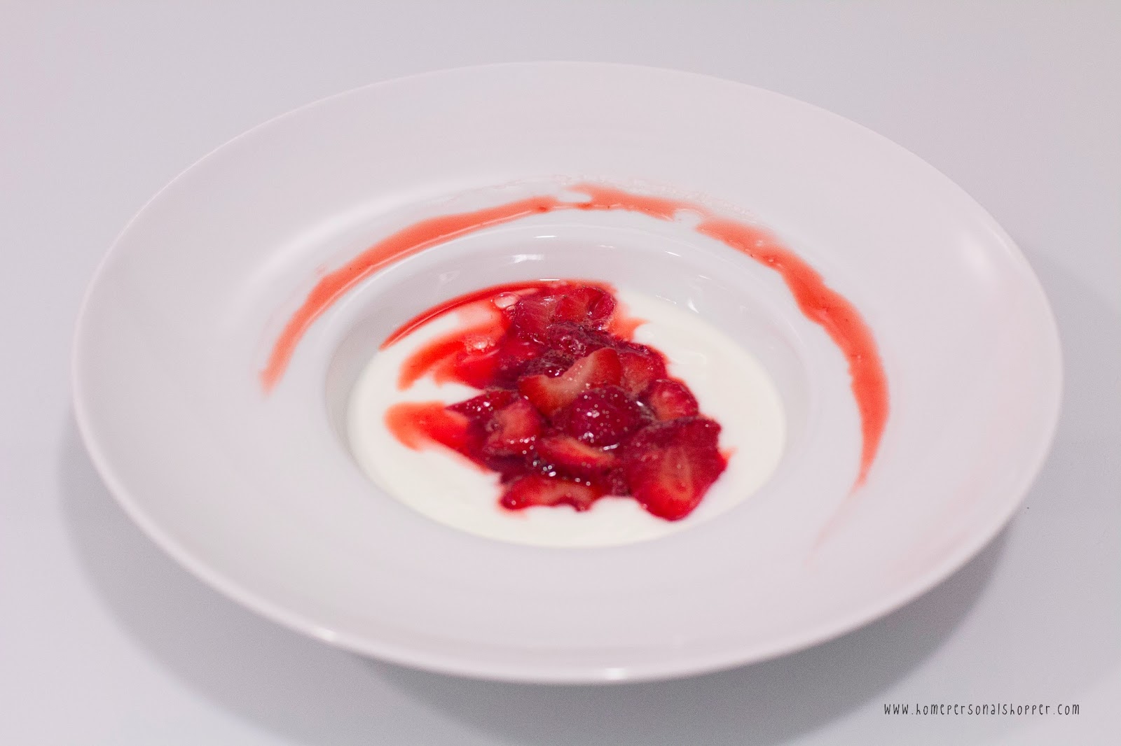 El plato se puede tomar frío dejando las fresas en este punto pero creo que de la otra manera sorprenderemos más a nuestros invitados :)
