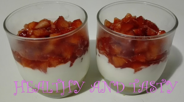 En este caso decido poner el yogur lo primero para que las fresas se queden arriba y den más color al plato.