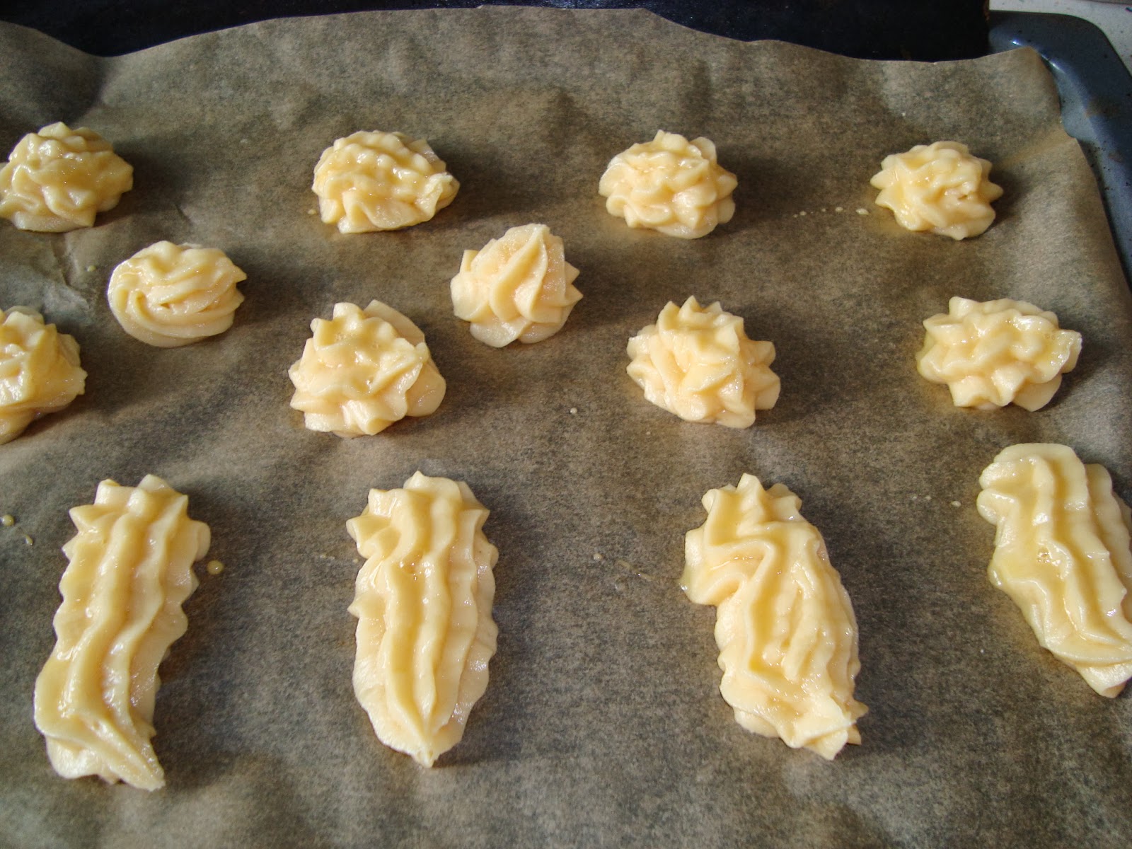 Poner la masa en una manga pastelera e ir poniendo montoncitos separados entre si para que no se peguen cuando crezcan.