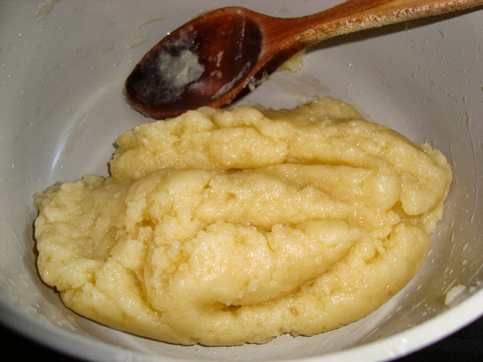 Para la masa en una cacerolita ponemos el agua junto con la mantequilla y la sal, cuando empiece a hervir volcamos la harina de golpe y si dejar de remover hasta que la masa se separe de las paredes.