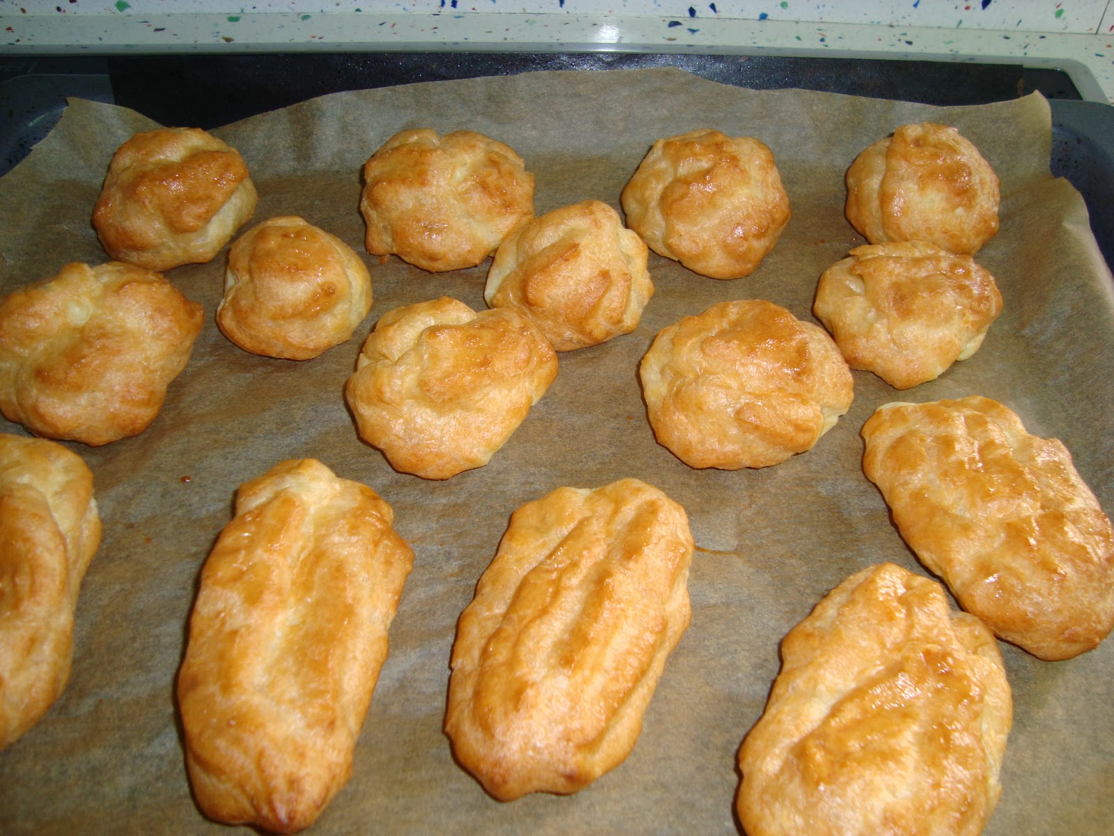 - 150 ml o gr de agua, 70gr de mantequilla, 70gr de harina, 1/2 cucharadita de sal, 2 huevos.