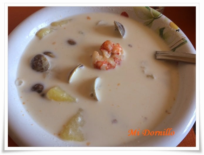 * Cuando hierba incorporamos el rape y dejaremos unos 15 minutos. Pasado este tiempo sacamos el rape, quitamos las espinas, desmenuzamos y reservamos.