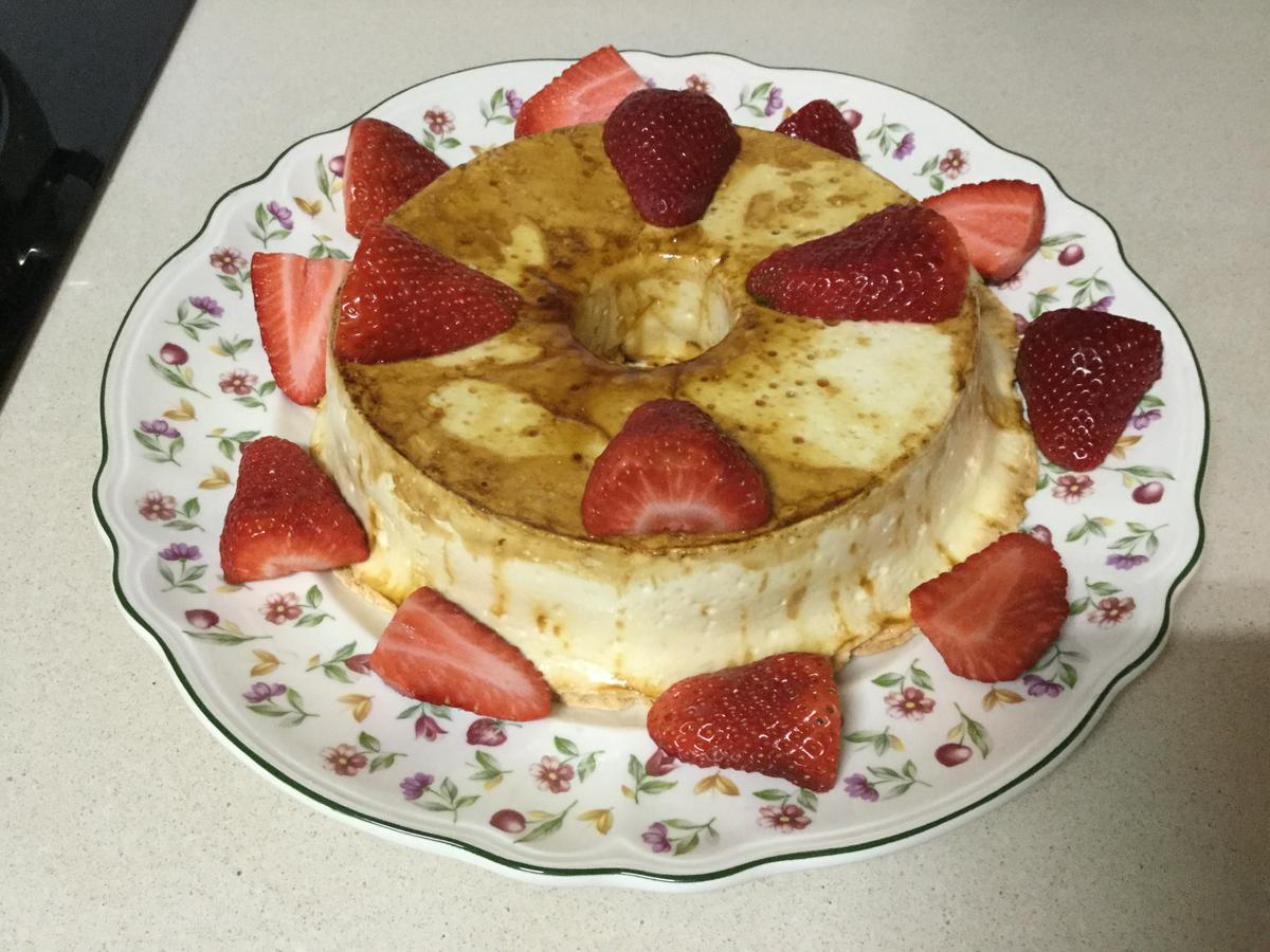 Supongo que por haber utilizado el spray desmoldante, el pudin subió mucho y luego se bajó algo, aunque ya os digo que no importa que el resultado fue bueno.