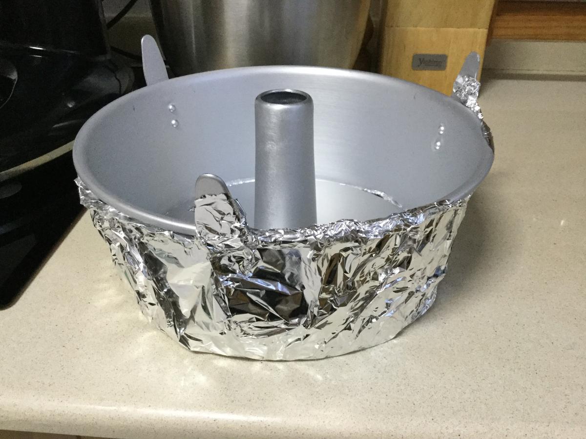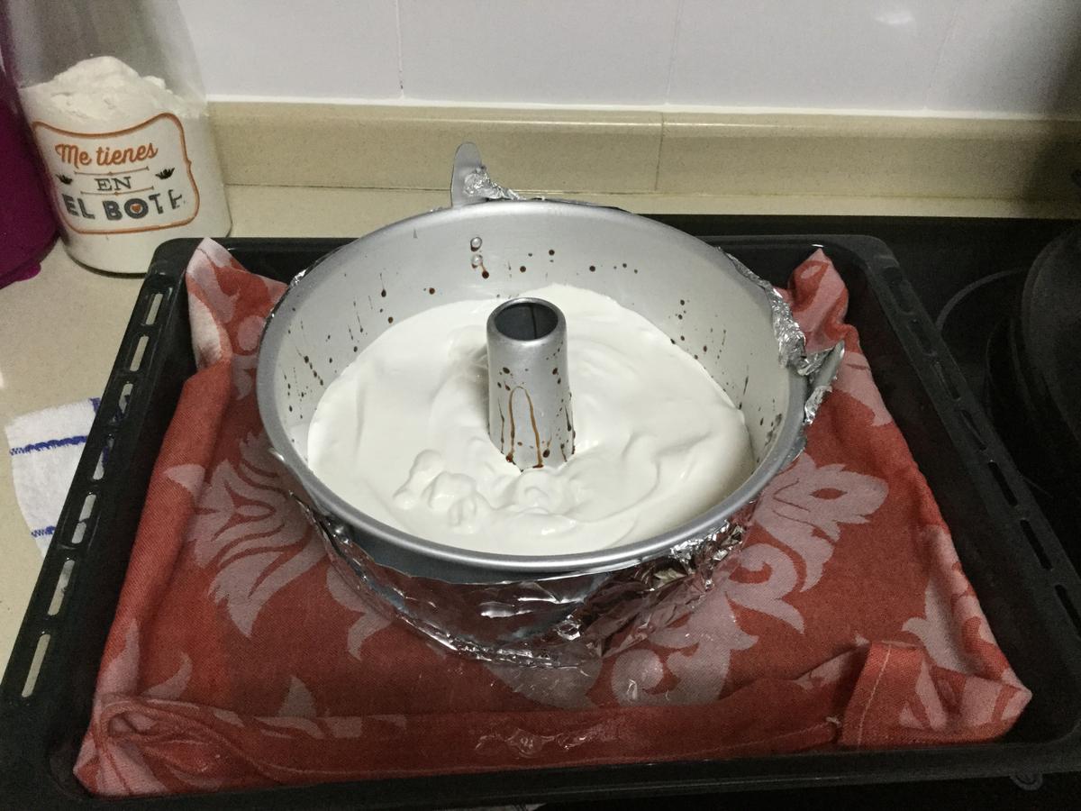 Forré el molde con papel de aluminio en el exterior porque tiene la base desmoldable y lo último que tiene que ocurrir es que le entre agua durante la cocción.