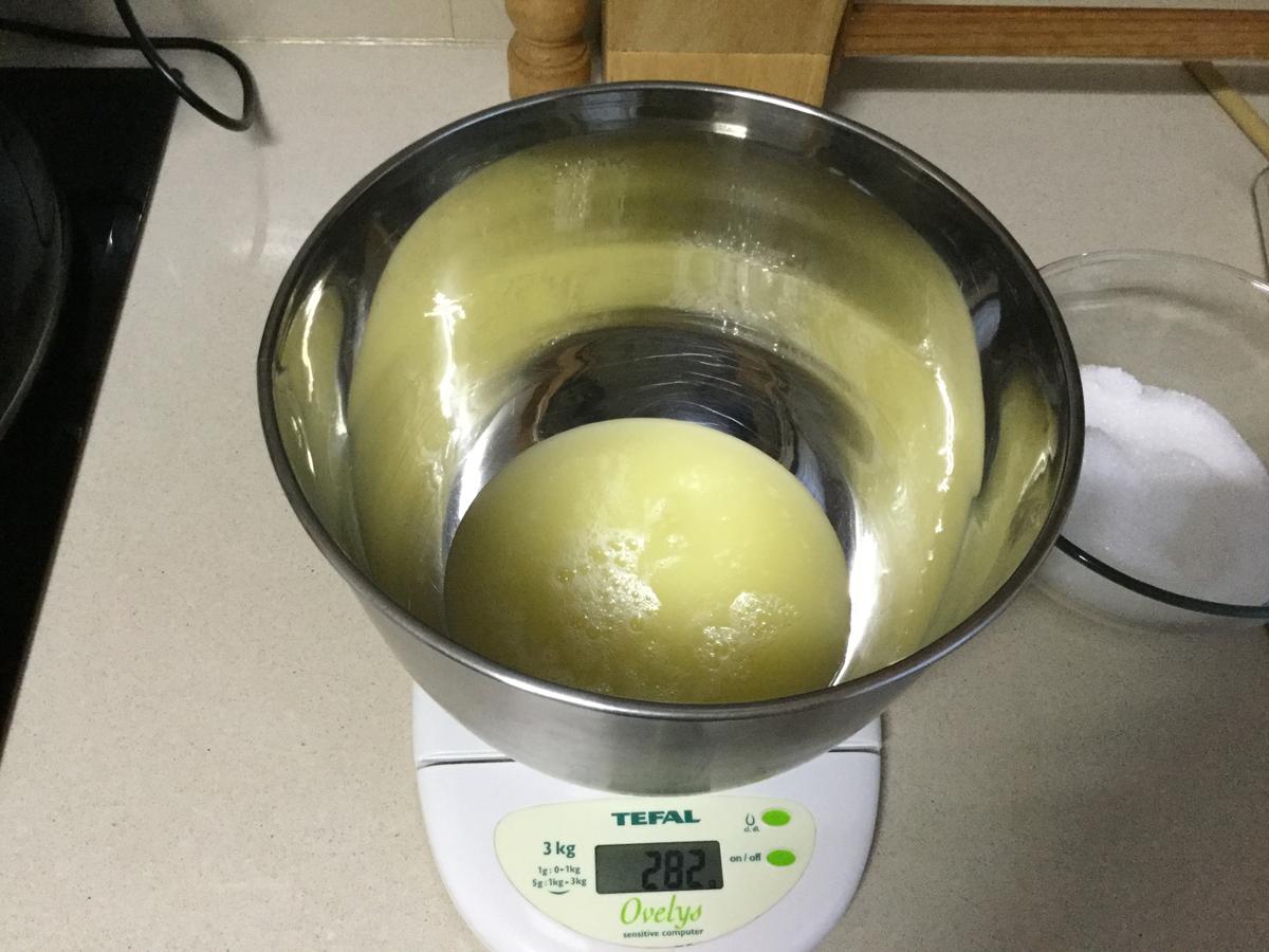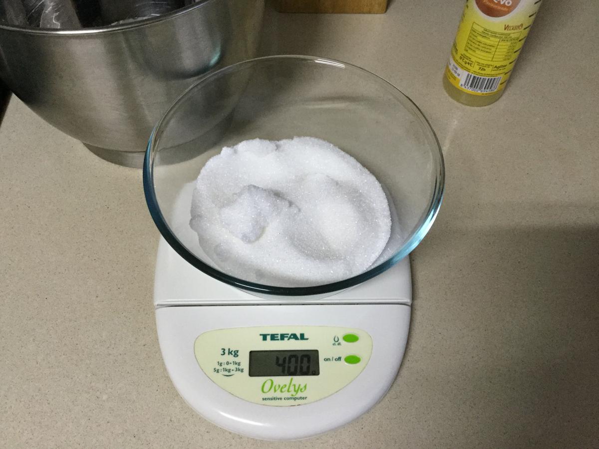 Si os fijáis, en la foto el peso marcado no se corresponde con la cantidad de azúcar que indico en los ingredientes. Cuando busqué la receta ésta era la cantidad dada, pero sinceramente es excesiva, se corre el riesgo de entrar en un coma diabético. Mejor bajar a 300 grs.