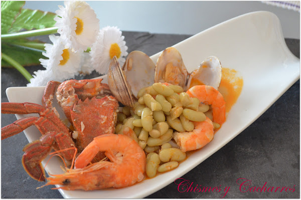 3 pulpos,3 nécoras,300 gr de almejas,300 gr de berberechos,500 gr de mejillones,500 gr de langostinos o gambas,6 oricios,Sidra natural,Aceite de oliva,Ceboola,Ajo,Perejil,SalPrimero se hace una salsa de cebolla, ajo y perejil. Cuando la cebolla está blandita, se le incorporan las huévaras de oricios (erizos de mar) y un vaso de sidra natural. Se pasa todo por la batidora (puede echarse un poquito de harina para engordar la salsa).