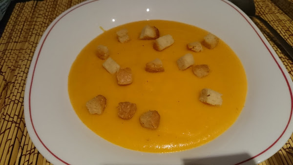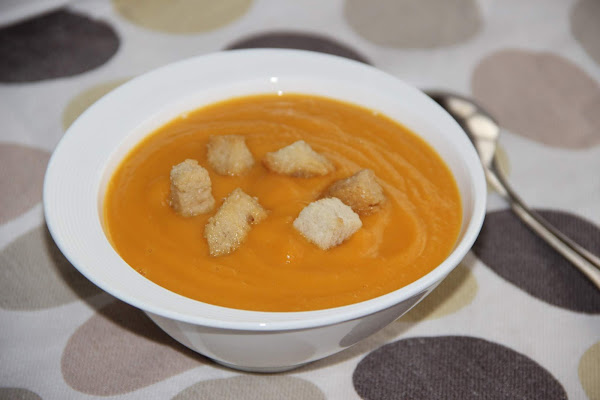 Se sirve adornado con los trocitos de calabaza y un ramito de perejíl.