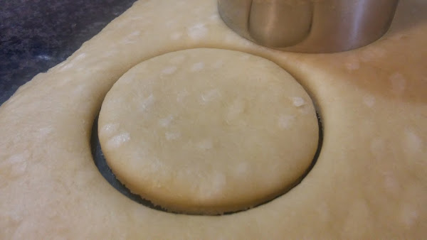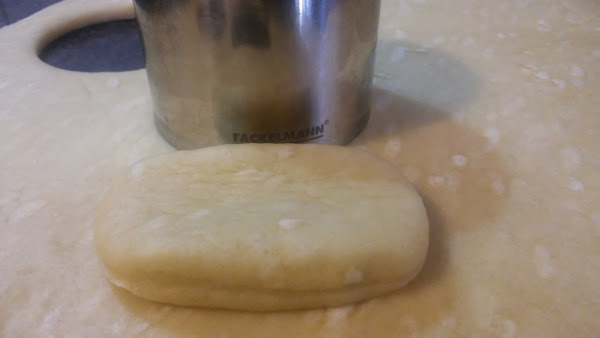 6. Precalienta el horno y mientras, con un cortador redondo, corta la masa y luego con los dedos dale forma ovalada y pincha en el centro con el tenedor.