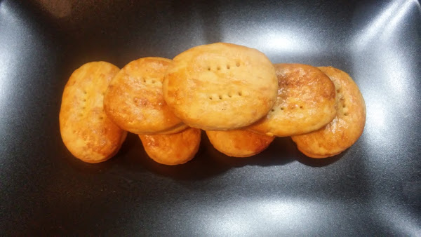 7. Pon una lámina de papel de horno en una bandeja y coloca las quelitas. Pínchalas con un tenedor y pinta la superficie con huevo batido para que luego cojan un color dorado.