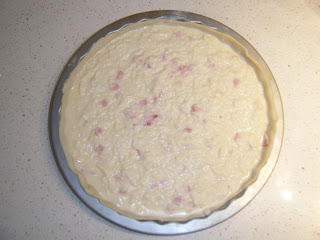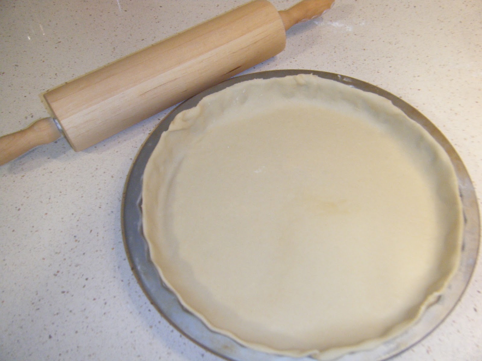 3.- Forramos con la masa un molde redondo para tartas previamente engrasado y enharinado.