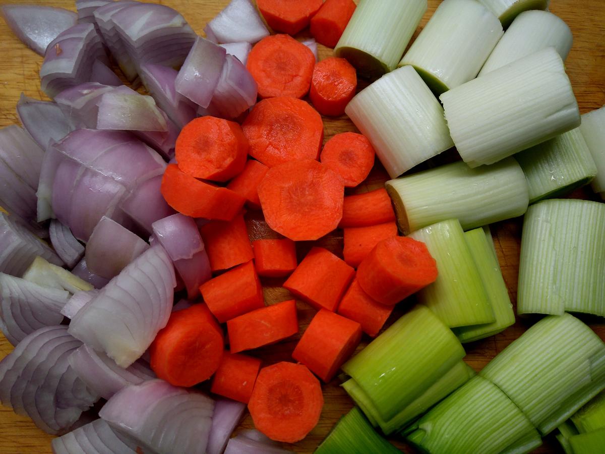 Ahora vamos a cocinar nuestro Rabo de Ternera al chocolate, comenzamos a preparar nuestros ingredientes para cocinar nuestro plato. Pelamos y cortamos todas las verduras y las reservamos.