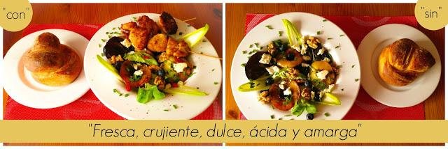 Se trata de una Ensalada de Otoño que combina ingredientes para conseguir un plato " fresco, crujiente, dulce, ácido y amargo",
