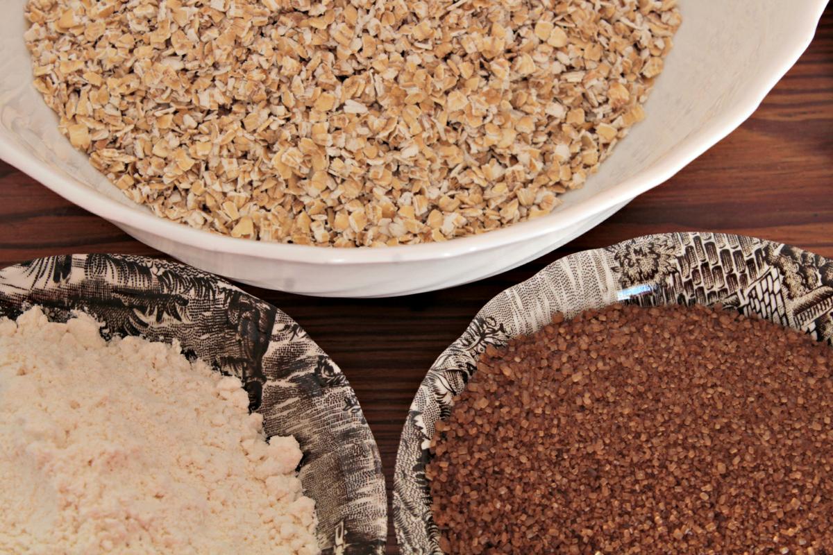 Mezclar los ingredientes secos (avena, harina, azucar, levadura y sal)
