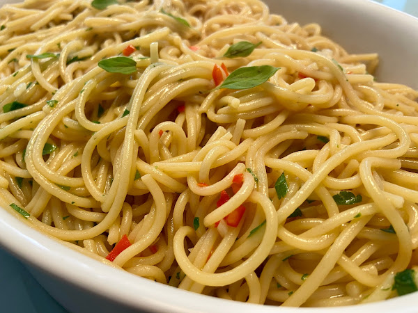 ESPAGUETIS CON GAMBAS Y CHAMPIÑONES. Al toque guindilla para los mayores.