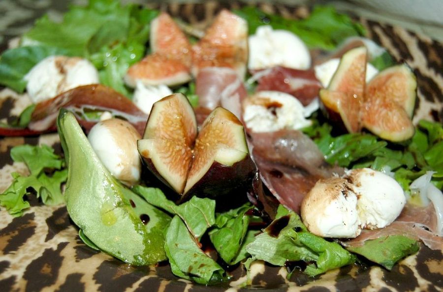 Ensalada de manzana, kiwi, aguacate, vinagre de Módena e higos (Carmerosa)