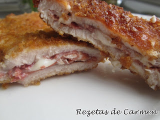 2)Desde el blog "REZETAS DE CARMEN" nos llegan estos LIBROS DE LOMO CON JAMÓN Y QUESO, Y PATATAS DE LUXE, ¡mirad qué corte tienen, con el quesito fundido!