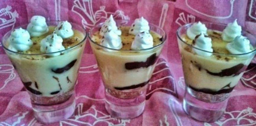 Vamos a comenzar con un postre muy fácil que podemos hacer con natillas caseras o con las que se compran, porque las vamos a combinar con bizcocho y chocolate para hacer unas copas de natillas y bizcocho deliciosas, muy rápidas de preparar y que son ideales cuando tenemos invitados. Para prepararlas vamos a necesitar natillas preparadas, chocolate de cobertura, nata para montar (crema de leche), magdalenas o bizcochos, clara de huevo y azúcar. Son tan sencillas de hacer que solo tenemos que derretir el chocolate con la nata y luego montar el postre alternando capas de bizcocho, natillas y chocolate, puedes VER LA RECETA AQUÍ