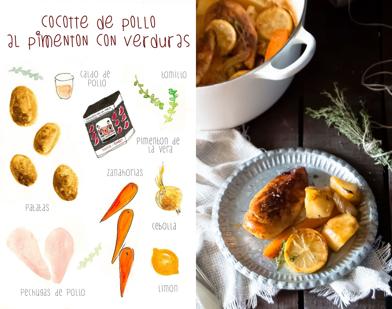 COCOTTE DE VERDURAS Y POLLO AL PIMENTÓN