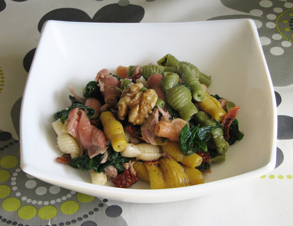 Cocina 130 gramos de la pasta corta de tu preferencia, en una olla con abundante agua y sal, el tiempo establecido en el empaque; una vez lista, escurre el agua y reserva mientras precalientas el horno a 200 °C. Sofríe, en un sartén con aceite de oliva, media cebolla y un diente de ajo picados finamente; una vez que estén dorados añade medio pimiento rojo, una ramita de cebollín, una ramita de puerro (todo picado muy fino) y 200 gramos de atún desmenuzado con un poquito de sal. Cocina hasta que el atún cambie de color pero sin que se seque.