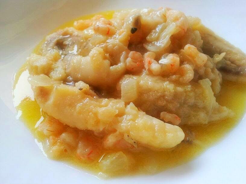 Desde el blog Cocina a Buenas Horas te traigo este Rape con gambas. Es una receta muy sencilla que se prepara con rape y se adereza con caldo de pescado, vino blanco y unas gambiatas. Priemro se fríe el pescado y luego se incorporan el resto de ingredientes. Muy rico y muy fácil.
