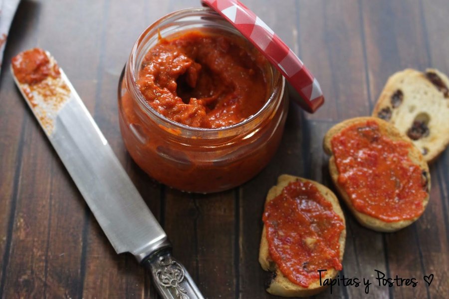 Se asa el pimiento unos 30 minutos al horno a 170 grados y se mezcla con los demás ingredientes. Se sirve sobre tostadas.